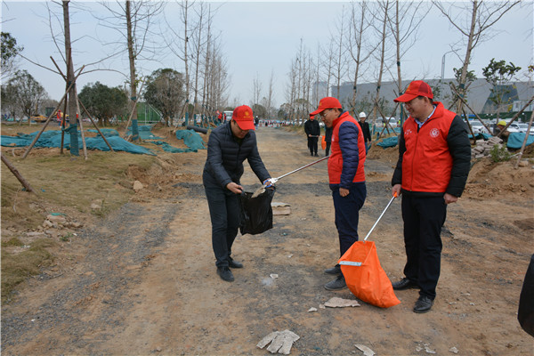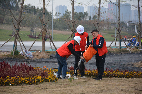 上午十时三十分,志愿服务活动开始后,集团公司党委委员、副总经理、项目部总经理汪洋亲自带头参加活动,其他党员干部带头干,职工群众积极干,参建单位负责人志愿加入干,大家拿起工具、弯下腰去,捡起草地上的生活垃圾,集中放进现场放置的垃圾桶内;没有拿到工具的同志们也拿起简易垃圾袋,将捡到的生活垃圾放进垃圾袋盛满后再放进垃圾桶内。一时间,党徽熠熠、爱心闪闪、干劲满满,不到一个小时时间,约20人的志愿服务队伍完成了近20000平米区域的垃圾清理任务,景观施工现场面貌大为改观。