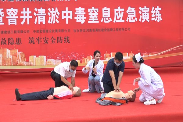 五是开展应急演练活动。6月23日下午,集团公司市政建设管理中心在杏贾路市政道路施工现场开展一次窨井中毒窒息应急救援演练活动,参加人员共计100余人,涉及公司所有在建市政工程项目参建单位。演练模拟污水井清淤作业意外中毒为背景展开,并邀请郑大一附院两名专家进行急救知识讲解和心肺复苏教学,取得了非常好的效果